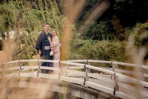 Although the Kyoto elopement ceremony was a success, and the setting was beautiful, and the couple were blown away with it all, we we not satisfied. Their brief was for a garden wedding, so we were going to right the wrongs of mother nature! One week later, on the Tokyo leg of their trip to Japan, we met them again, dressed them in Kimonos with help from the wonderful people at Vasara Kimono Rentals, and did a photoshoot, this time at a park in Tokyo. This park was not nearly as badly affected by the earlier typhoons.